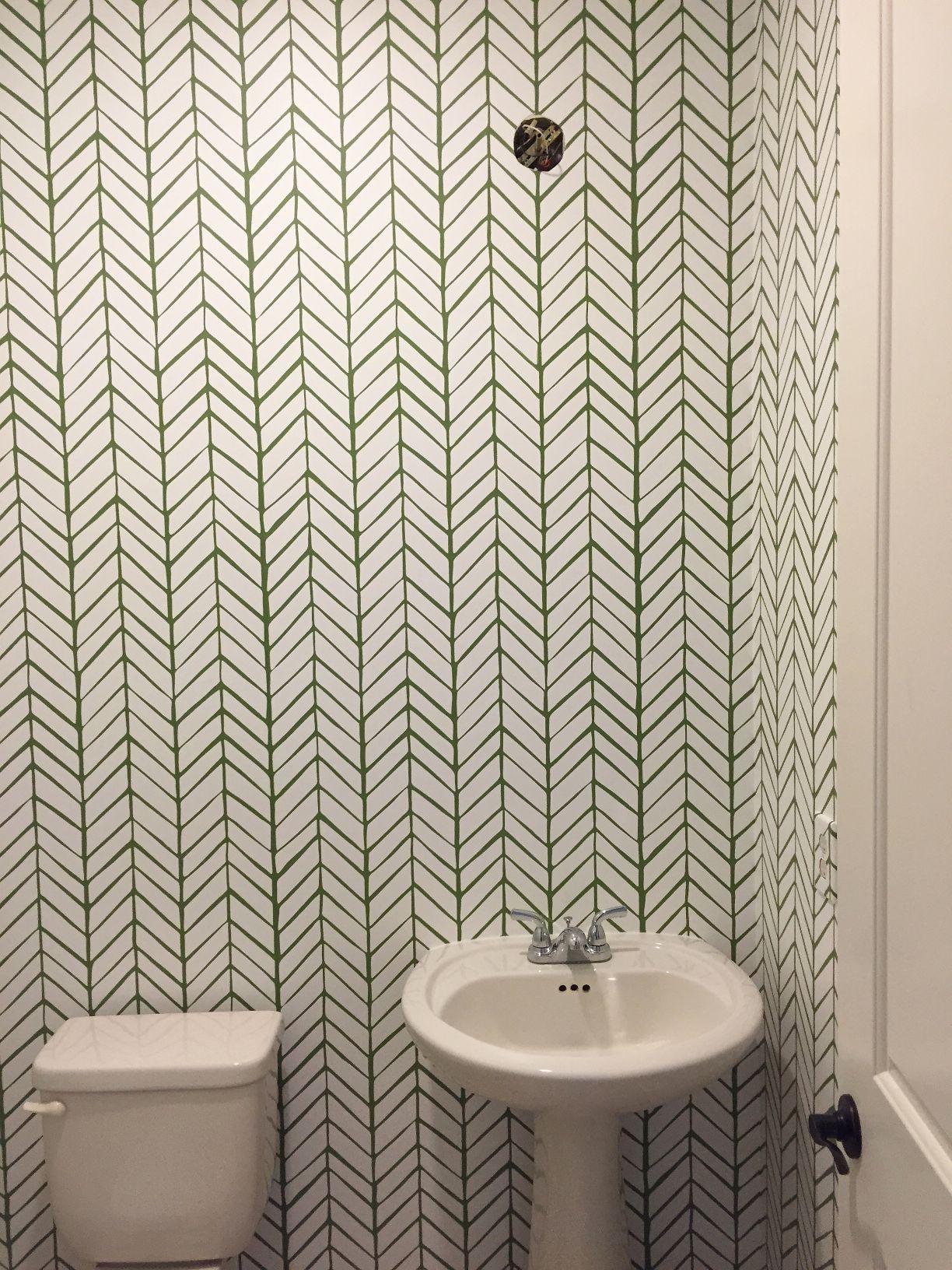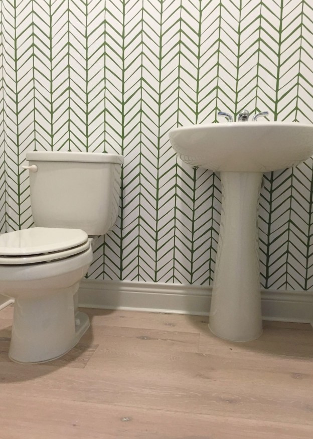 She is putting in an industrial style R.H. light fixture and a rough-wood (whitewashed) framed mirror. The faucets are also getting replaced. I will post photos later, when I get those!