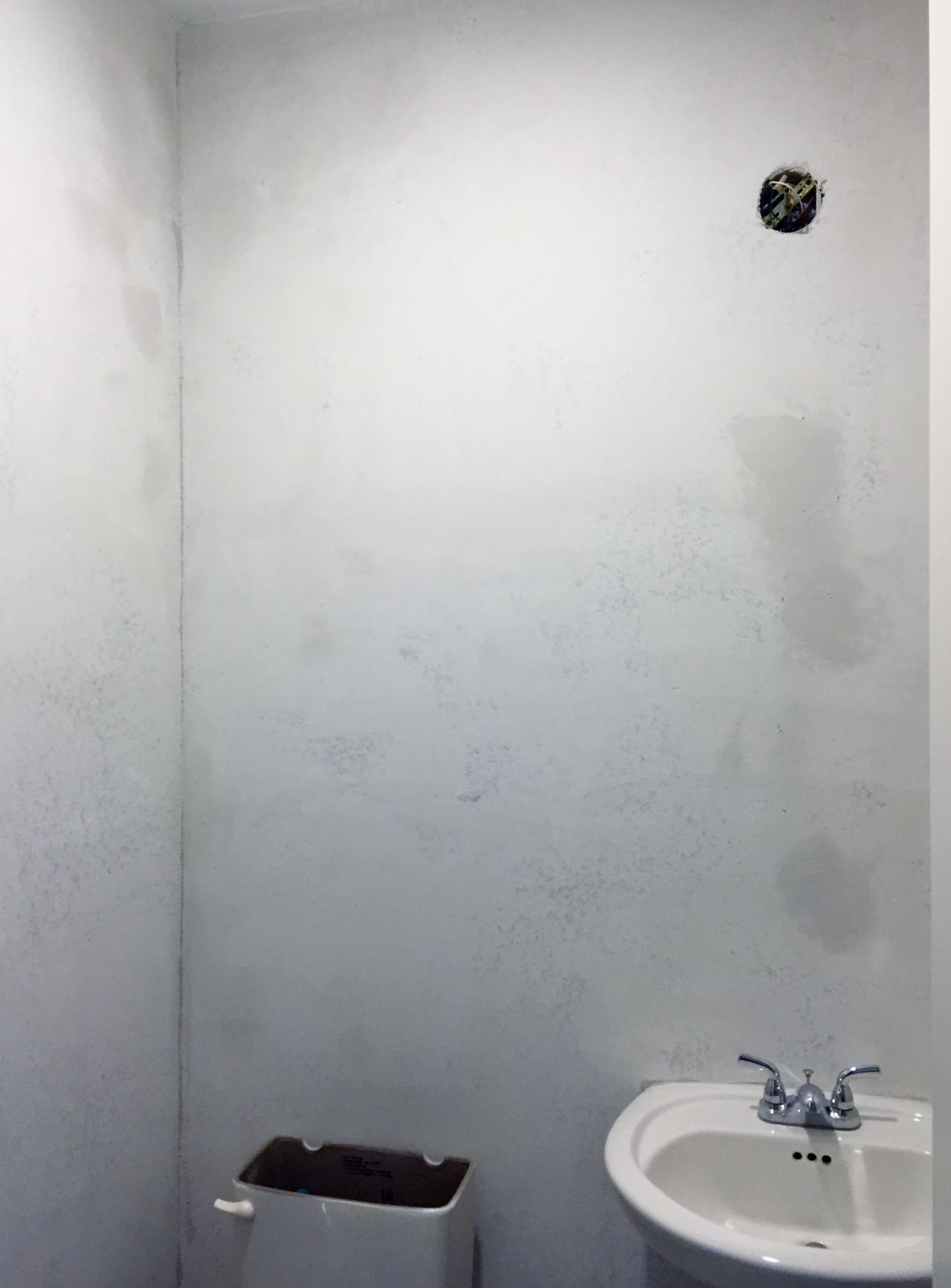 Floated, primed and blankstock hung before the paper was installed.